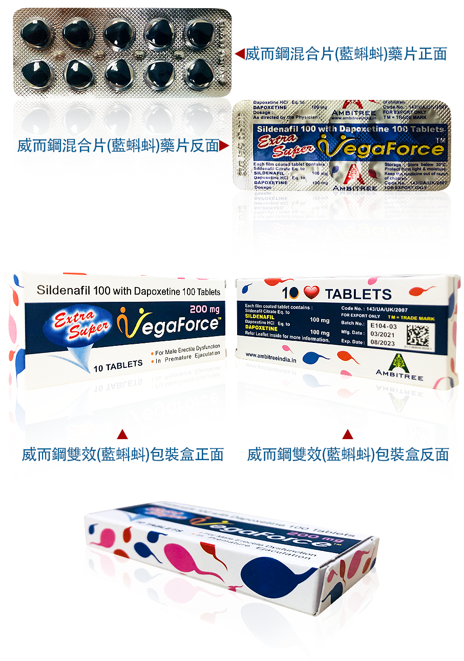 藍蝌蚪VegaForce是一種治療陽痿(ED)和早洩(PE)的藥物,它具有兩種不同成分的組合,可以同時作用於改善勃起功能和控制射精。具體來說,它包括西地那非(Sildenafil)和達泊西汀(Dapoxetine)這兩個成分,具有以下作用: